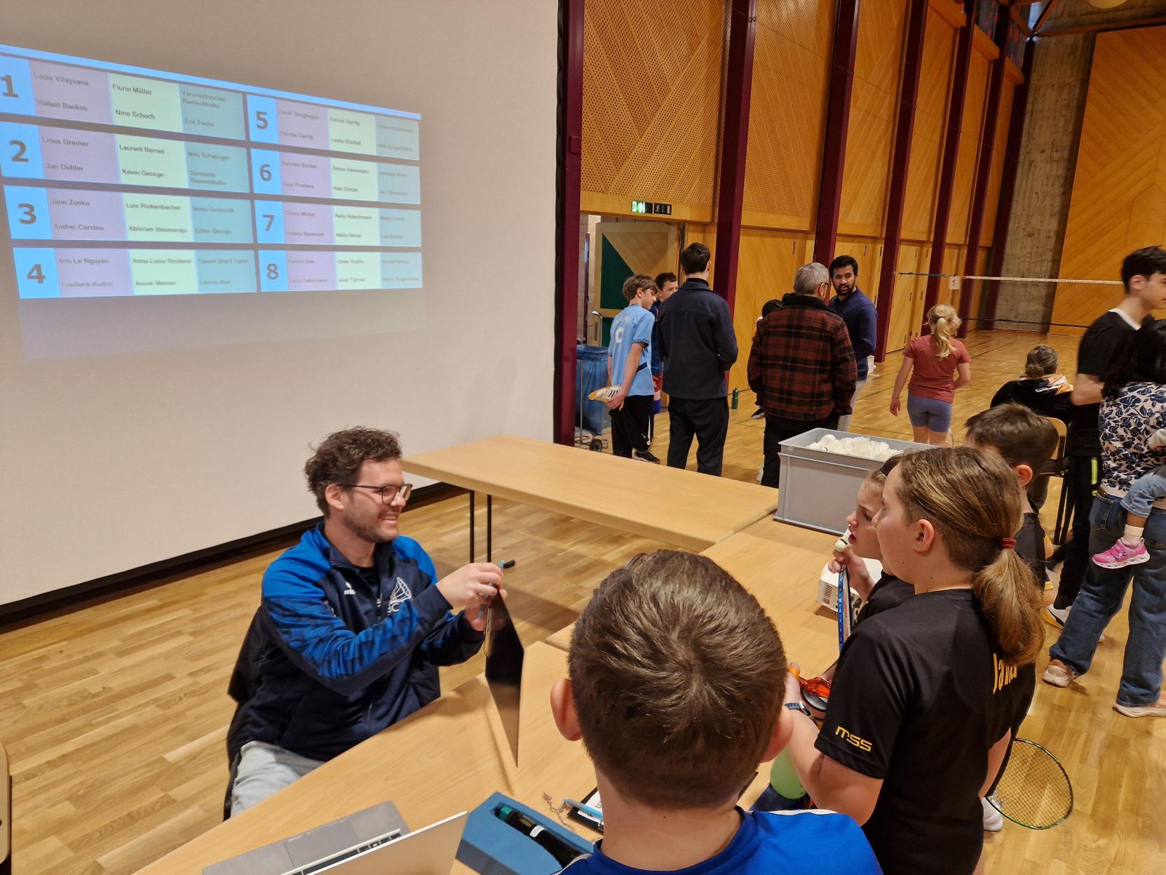 Um 13:00 Uhr wurden die Regeln durch Flavio souverän erklärt. Fünf Runden wurden gespielt. Dabei hatte jede Mannschaft pro Begegnung ein Doppel und ein Einzel zu bestreiten. Kampfgeist, Emotionen und viel Freude am Badminton waren spürbar.